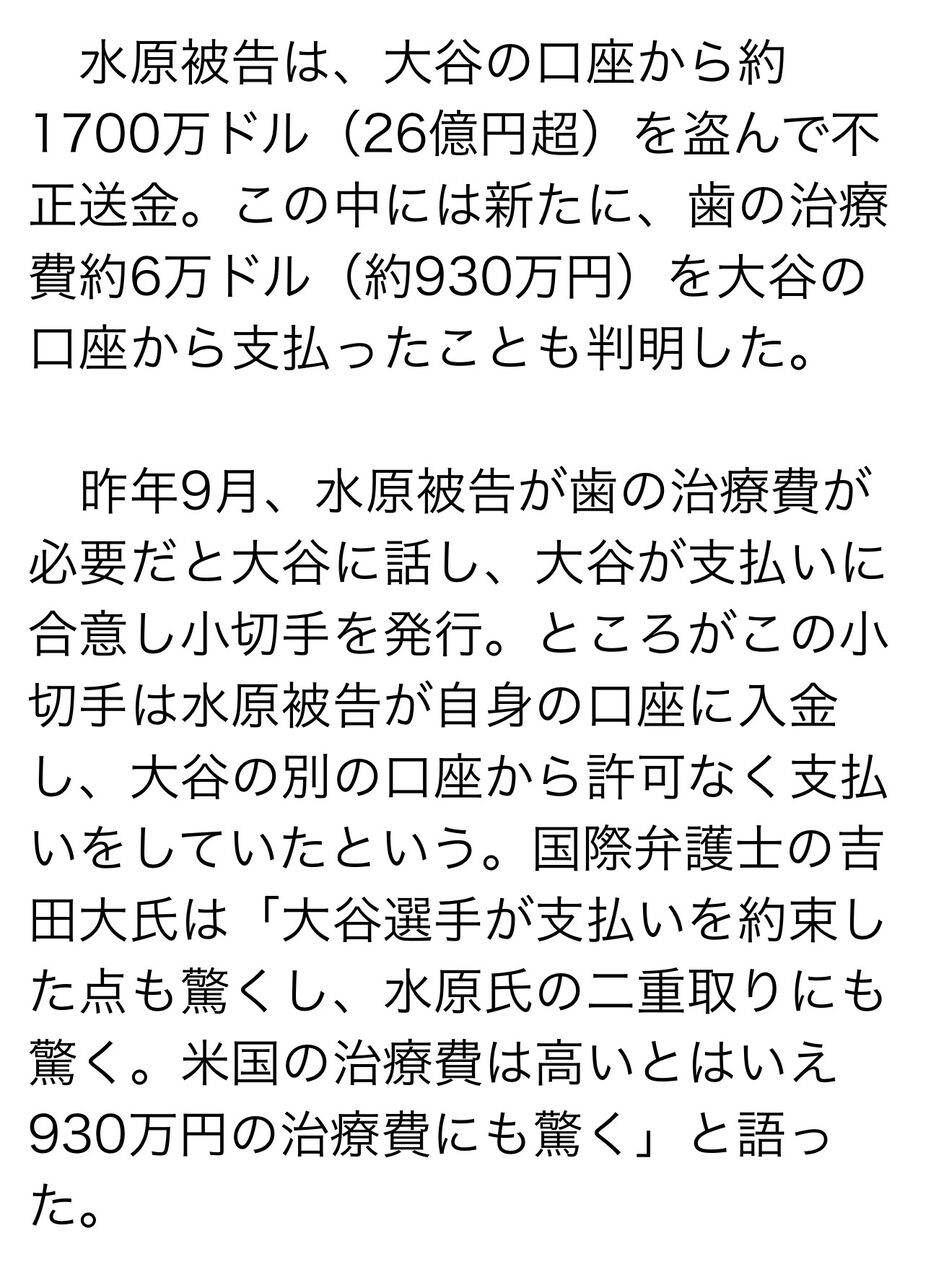 弁護士「給料7500万でその他の雑費(車や歯の治療費、大谷といる時の食事代、家賃150万の家代)は全て大谷が払っていた」