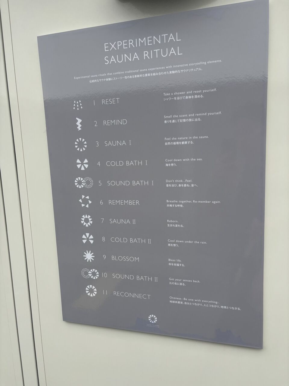 サウナの内容は、グループセッションでサウナ→水風呂→休憩→サウナ→水風呂→自由時間30分