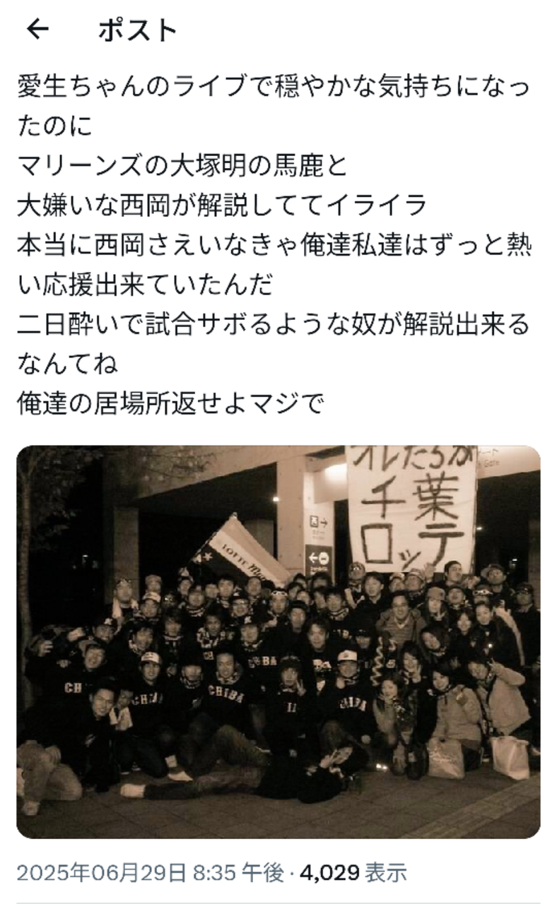 なんでロッテファンってこんなに内輪揉め大好きなんだ?