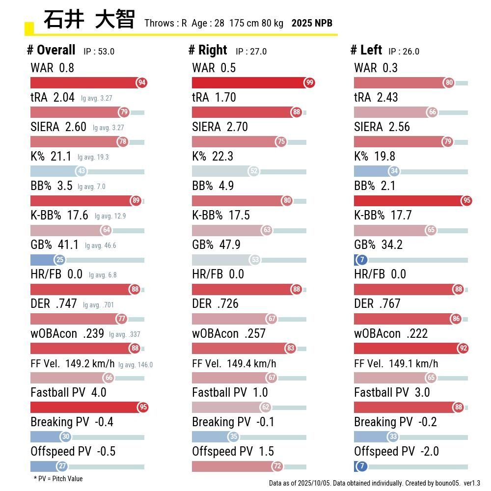 石井は交流戦2カード目のオリックス戦で頭にライナー喰らって入院してその後投げられへんかったんや
