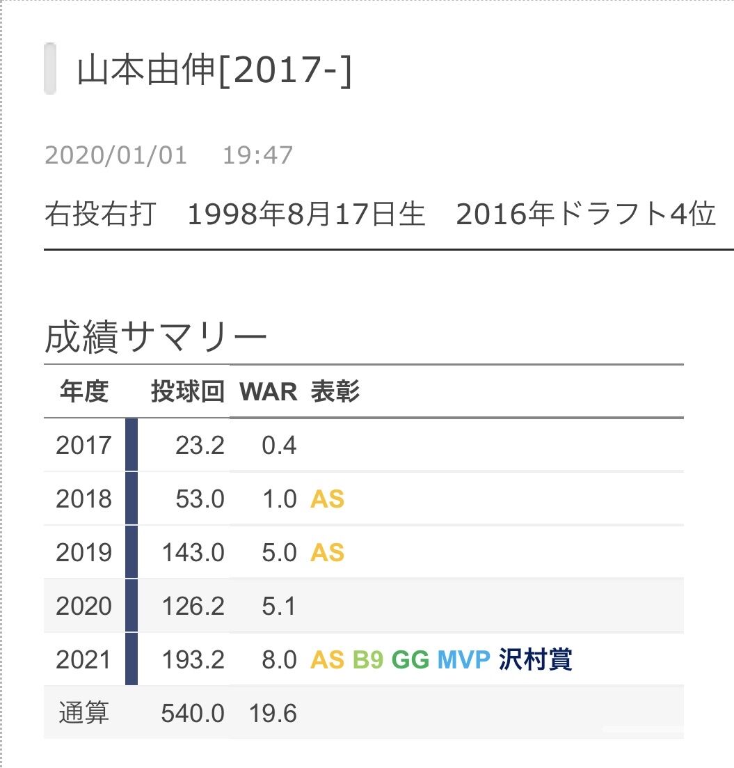 今井達也 WAR