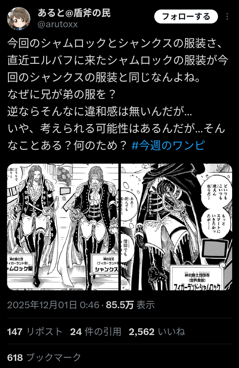 シャンクスが本当はシャンクだった路線で爆笑してたのにほんまにありそうな展開になってきてて草